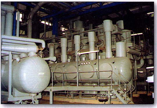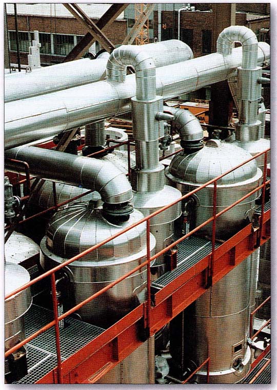 蒸發(fā)設備可分為普通多效蒸發(fā)器和閃蒸設備。Ebner閃急蒸發(fā)(簡稱閃蒸)設備是一種高效的多級連續(xù)真空蒸發(fā)設備,尤其適用于蒸發(fā)能力在5t/h以上,閃蒸設備因為其蒸發(fā)能力強、蒸汽耗用量小已在國內(nèi)廣泛推廣使用。酸浴閃蒸的特點是: