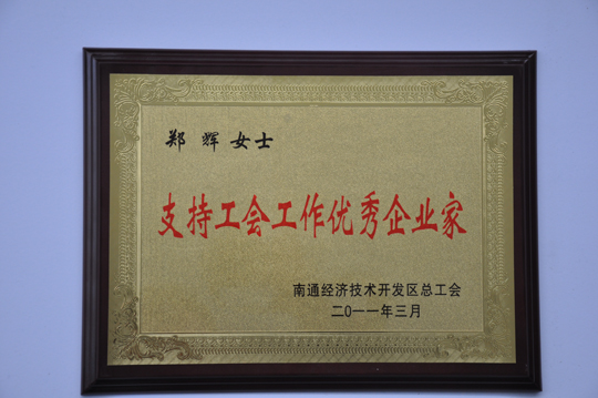 今年,開發(fā)區(qū)“支持工會(huì)工作優(yōu)秀企業(yè)家”評(píng)選工作盛況空前,候選人之間競(jìng)爭(zhēng)激烈。我公司工會(huì)委員會(huì)申報(bào)的候選人、公司總經(jīng)理鄭輝,憑借其對(duì)工會(huì)工作細(xì)致認(rèn)真的鼎力支持,最終得到了區(qū)總工會(huì)的高度認(rèn)可,成為“支持工會(huì)工作優(yōu)秀企業(yè)家” 榮譽(yù)稱號(hào)八位獲得者之一,也是唯一的一位女性企業(yè)家。在此,我們?nèi)w三圣人都應(yīng)該向她表示由衷的祝賀!
